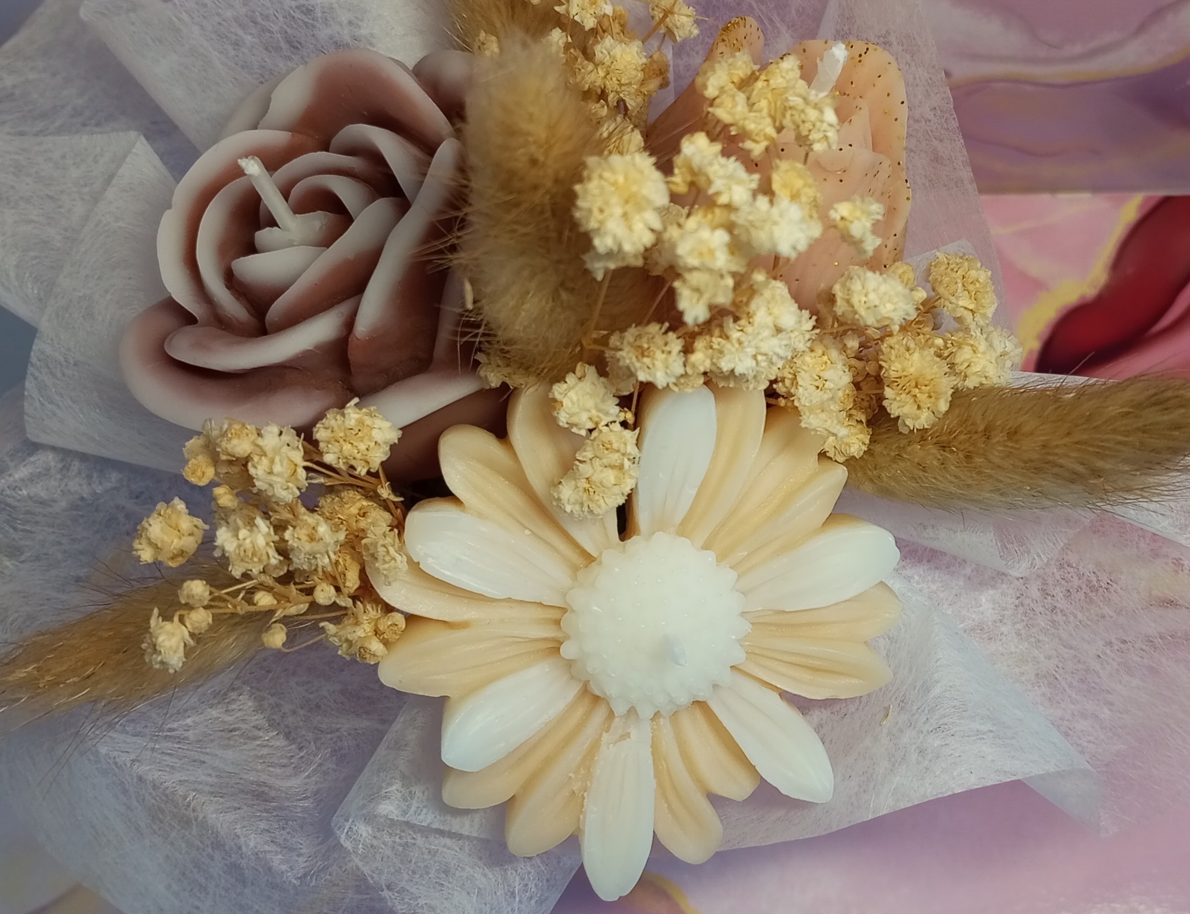 Laissez-vous transporter par la richesse d'un parfum aussi réconfortant qu'un voyage lointain. Notre bouquet de fleurs parfumées est une véritable parenthèse de douceur, une création artisanale qui enchante les yeux avant d'éveiller les sens.