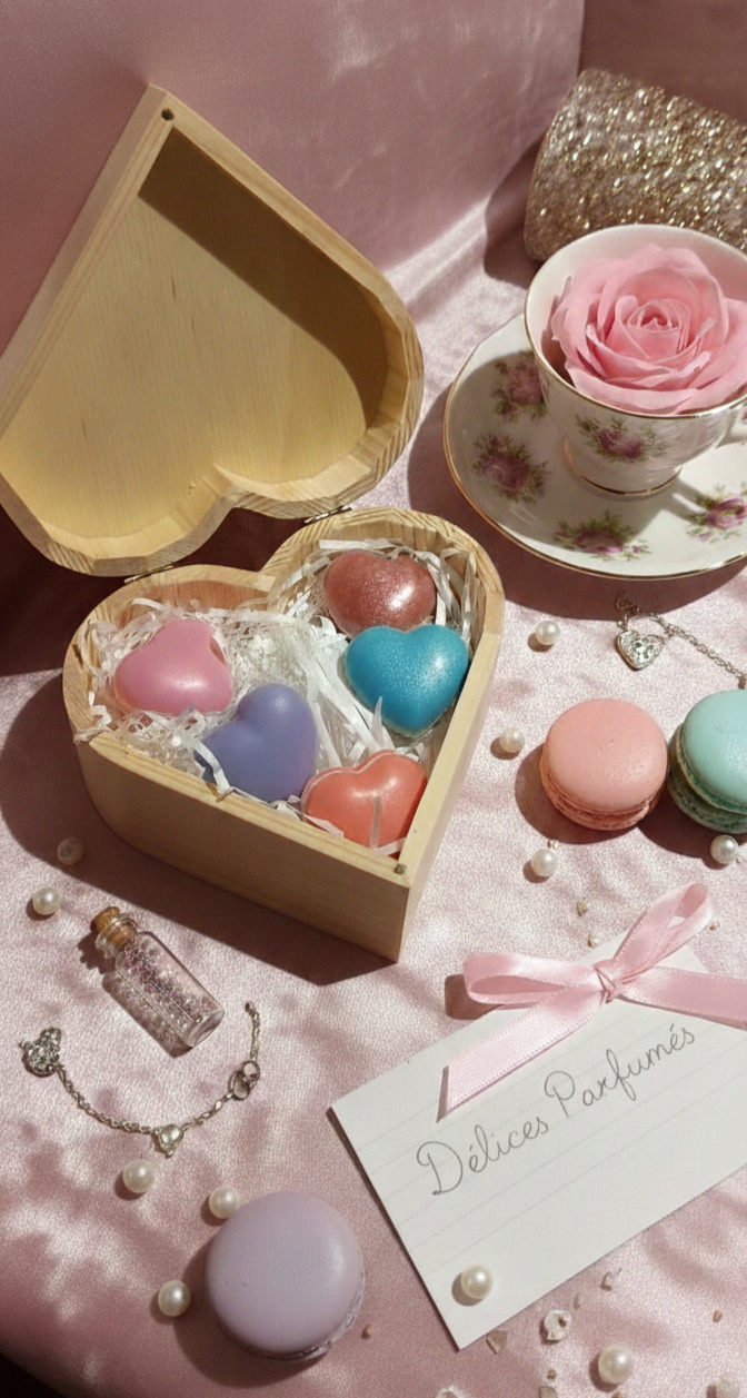 âCraquez pour notre Coffret Cœur en bois gravé, un écrin de douceur qui cache bien son jeu. À l'intérieur, découvrez 5 fondants "macarons cœurs" ultra-généreux de 20 g chacun.