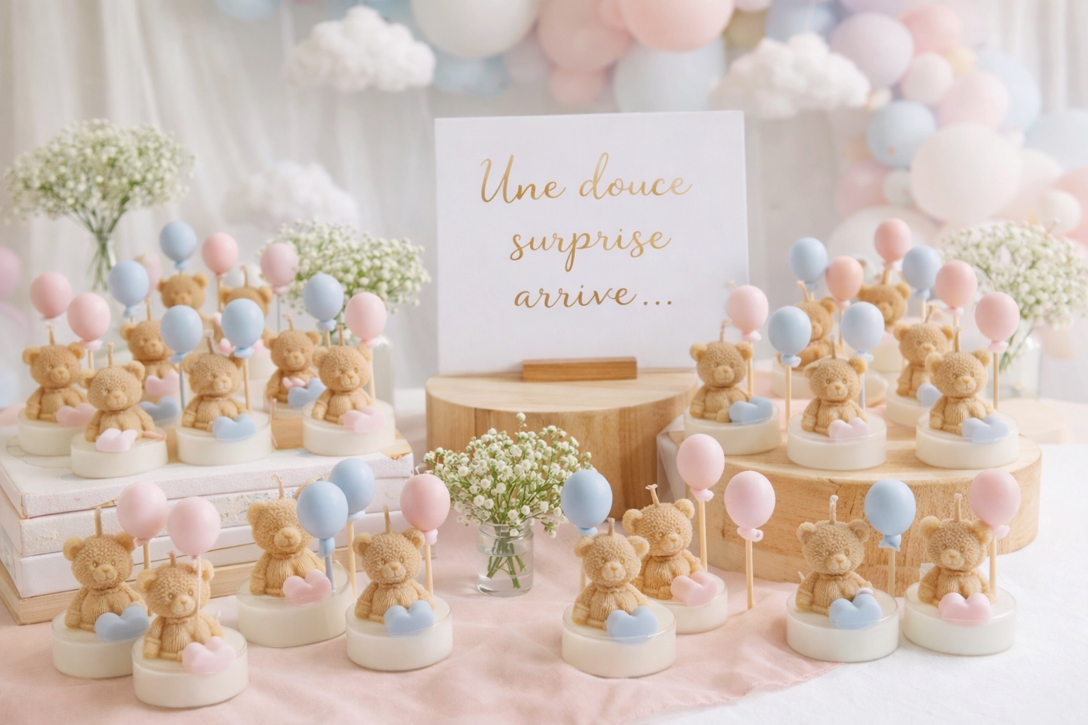 âParce que chaque nouvelle vie mérite d’être célébrée dans un cocon de tendresse, nous avons créé ces bougies "Oursons Rêveurs". đ§žâïž