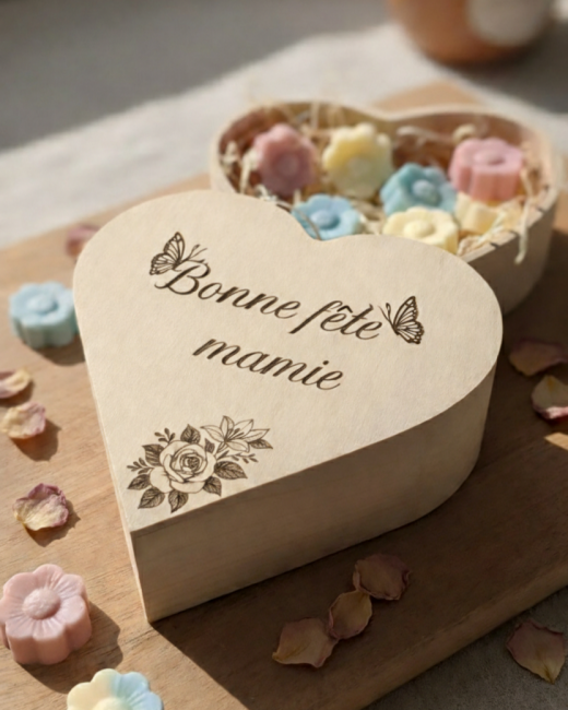 Parce qu'une grand-mère est une personne unique, elle mérite un cadeau qui l'est tout autant. Découvrez notre Coffret Spécial Fête des Grands-Mères : une attention délicate nichée dans un écrin en bois naturel.