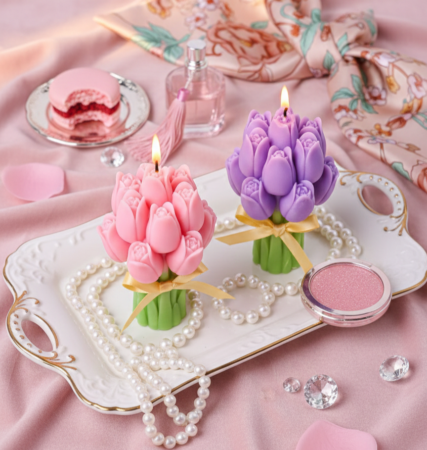 Laissez-vous charmer par l'élégance éternelle de nos bougies "Bouquet de Tulipes". Plus qu'une simple bougie, c'est un véritable objet de décoration sculptural qui apporte une touche de poésie à votre intérieur.